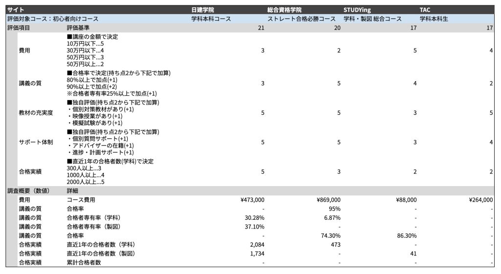 ランキングは各予備校・通信講座の優劣を意味するものではありません。